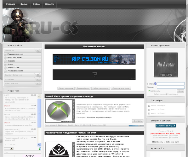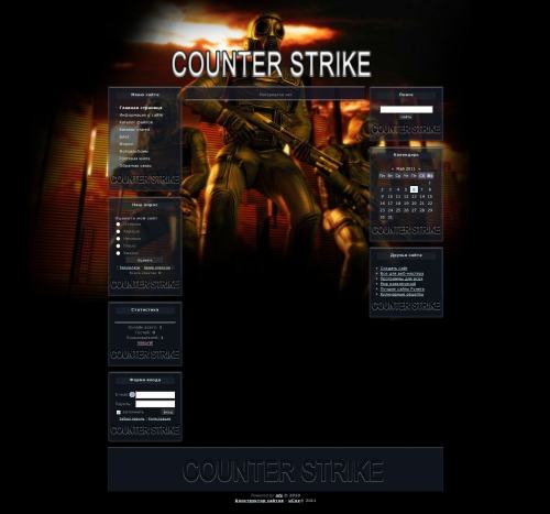 Шаблон на тему самой знаменитой игры в мире Counter-Strike 1.6. Он имеет тёмный дизаин, прозрачные блоки, Очень симпатичный фон.В архиве имеется только: конструктор и CSS.