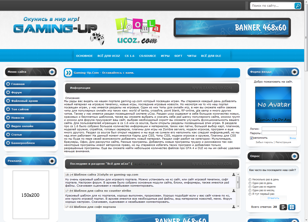 Шаблон для ucoz Весна server-lviv.Шаблон готов к установке на ваш игровой или просто портал. В архиве есть инструкция по установке.Качайте и устанавливайте...